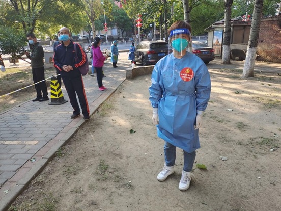 疫情防控是一場(chǎng)硬仗,王艷從凌晨起床到達檢測服務(wù)現場(chǎng),直至檢測結束,她沒(méi)有一句怨言,與抗疫一線(xiàn)的醫護人員、下沉工部、街道干部、社區工作者們始終堅守崗位。為確保核酸檢測工作的順利進(jìn)行,她積極與相關(guān)街道和社區溝通協(xié)調,及時(shí)跟進(jìn)檢測時(shí)間,嚴格按照所報道社區防疫要求,協(xié)同社區工作人員保障檢測現場(chǎng),進(jìn)行場(chǎng)地布置安裝、清潔消殺、秩序維護、證件掃碼,不怕苦不怕累,臟活累活搶著(zhù)干,處處彰顯一名共產(chǎn)黨員的表率作用。她說(shuō):“居民們的笑臉,使我深感志愿服務(wù)的光榮和意義,更加激發(fā)了我以實(shí)際行動(dòng)助力社區疫情防控,踐行初心使命的信心和責任”。