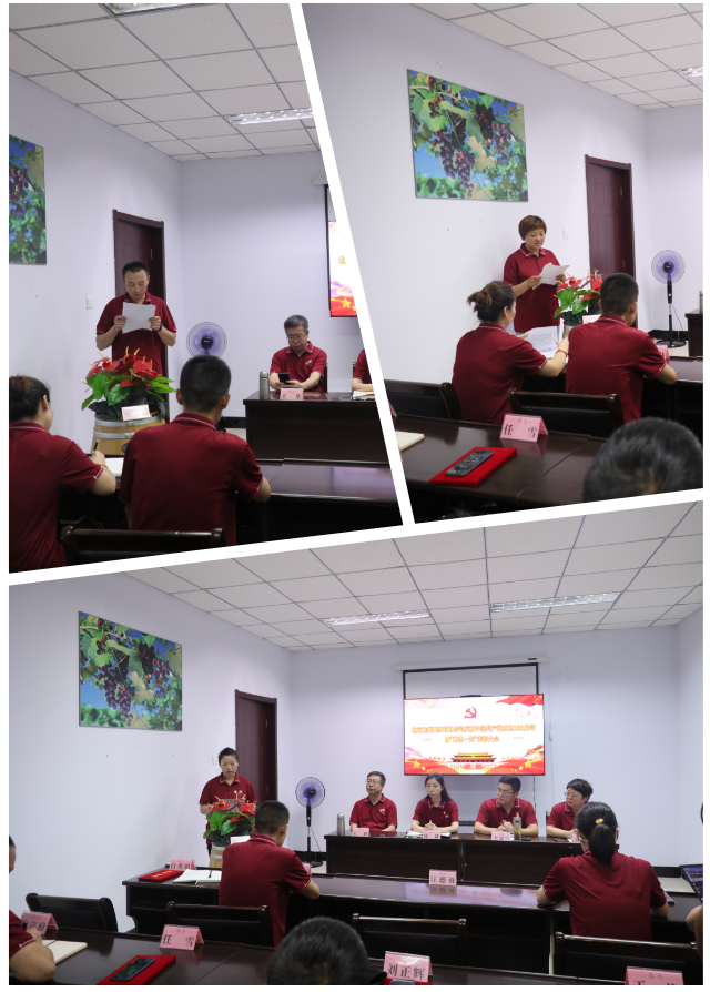 下午,龍徽公司黨總支在懷來(lái)龍徽莊園召開(kāi)慶祝中國共產(chǎn)黨成立102周年暨“兩優(yōu)一先”表彰大會(huì ),龍徽公司黨總支書(shū)記陳靜以《高舉習近平新時(shí)代中國特色社會(huì )主義思想偉大旗幟 推動(dòng)龍徽公司實(shí)現高質(zhì)量新發(fā)展》為題,為廣大黨員干部講了一堂生動(dòng)、精彩、深刻的專(zhuān)題黨課。龍徽公司黨總支副書(shū)記李建興主持會(huì )議。