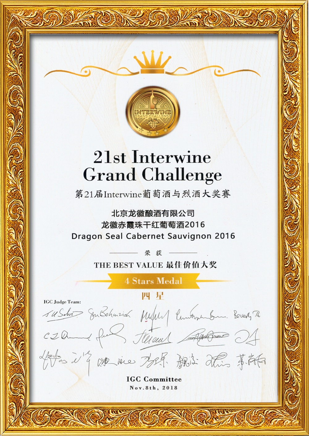 2016第21屆interwine葡萄酒與烈酒大賽最佳價(jià)值大獎——龍徽赤霞珠干紅葡萄酒2016
